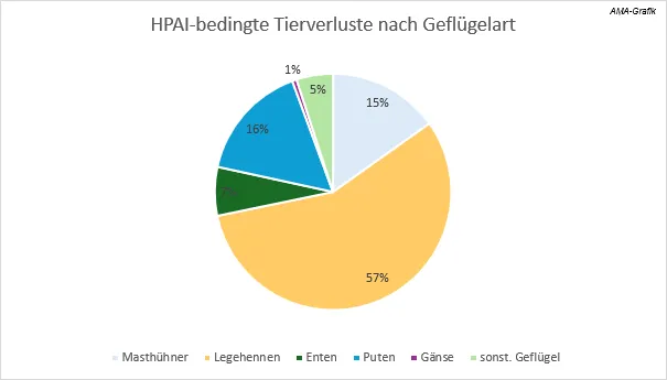 EU-weit waren zwischen 1. Oktober 2025 und 11. Februar 2026 insgesamt 573 Geflügelbetriebe von Ausbrüchen der hochpathogenen aviären Influenza betroffen. In diesem Zeitraum mussten knapp 21 Millionen Tiere gekeult werden. Besonders stark betroffen war Deutschland, das mit 187 Fällen rund ein Drittel aller gemeldeten Ausbrüche verzeichnete. EU-weit traten die meisten Fälle in Puten- und Entenhaltungen auf, während Legehennenbetriebe mit knapp 12 Millionen verendeten oder gekeulten Tieren die größten Tierverluste hinnehmen mussten.